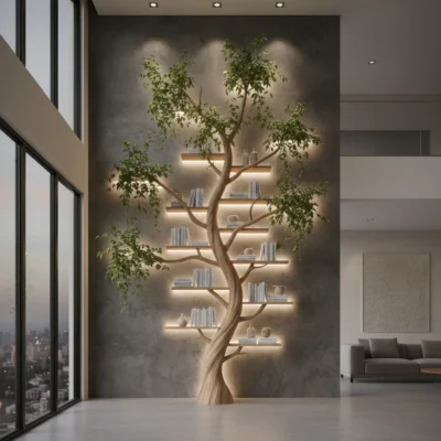 In today’s modern homes, furniture serves not only a functional purpose but also reflects personal style. A tree-shaped bookshelf is a perfect example — both practical and artistic, it naturally becomes a striking focal point in any room. But to truly bring out its sculptural beauty and showcase the items it holds, lighting plays a crucial role. The right lighting can highlight the bookshelf’s unique design, create a warm ambiance, and enhance the overall mood of the space.